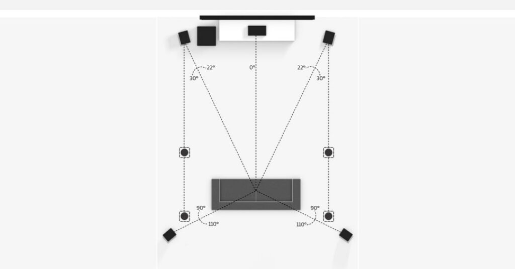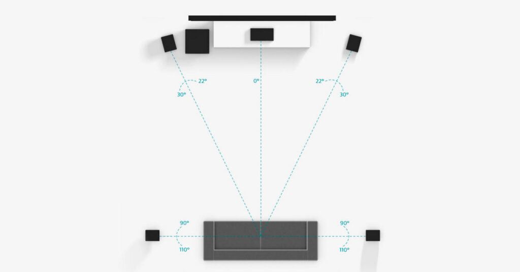 Sonido envolvente 5.1 ofrece una experiencia cinematográfica a través de cinco altavoces y un subwoofer.Para crear un sistema de sonido óptima, familiarizarse con el papel y la posición de cada altavoz. Elegir un punto de descanso en el centro y el ángulo de los altavoces por lo que, manteniéndolas a la altura de su oído cuando esté sentado, a menos que se indique lo contrario.