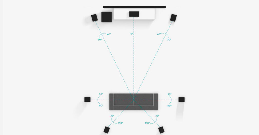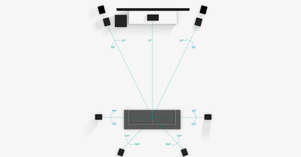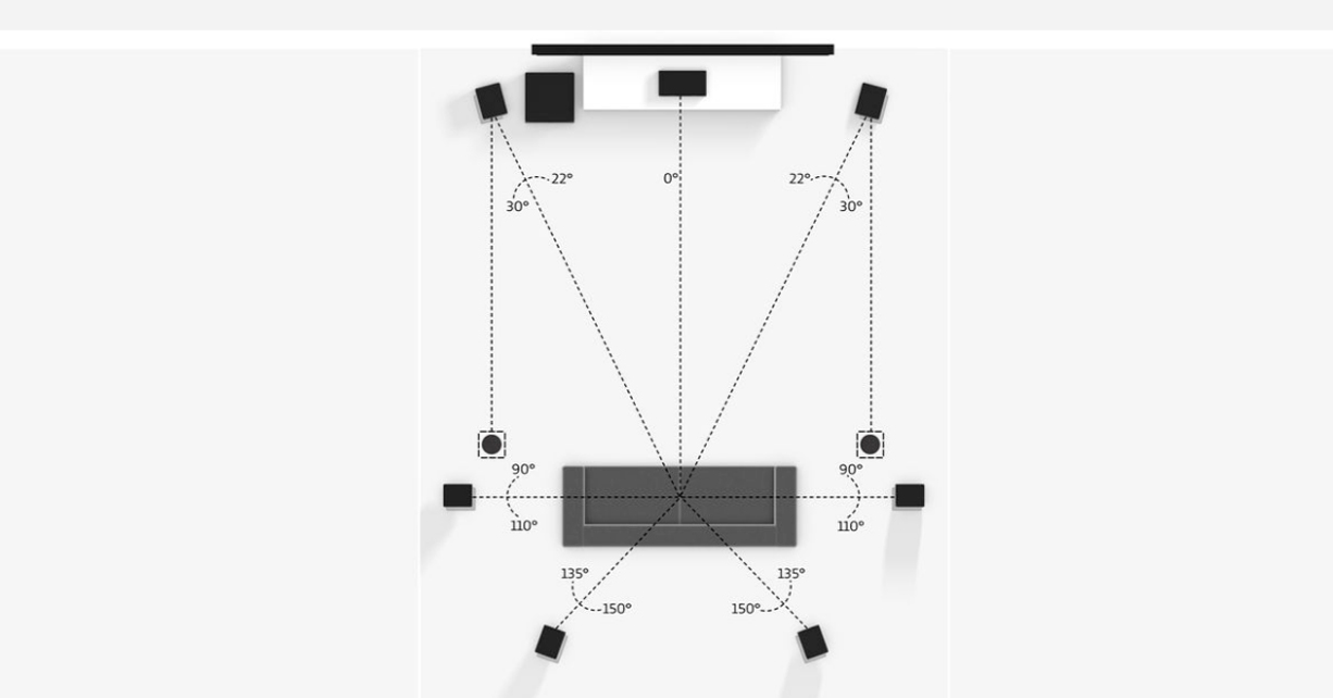 Un sistema de 7.1 canales para sonido envolvente mejora la direccionalidad de los efectos de sonido y añade al ambiente de audio de 3D. Un sistema 7.1.2 o 7.1.4 añade dos o cuatro altavoces Dolby Atmos® habilitados o módulos de sonido por encima.